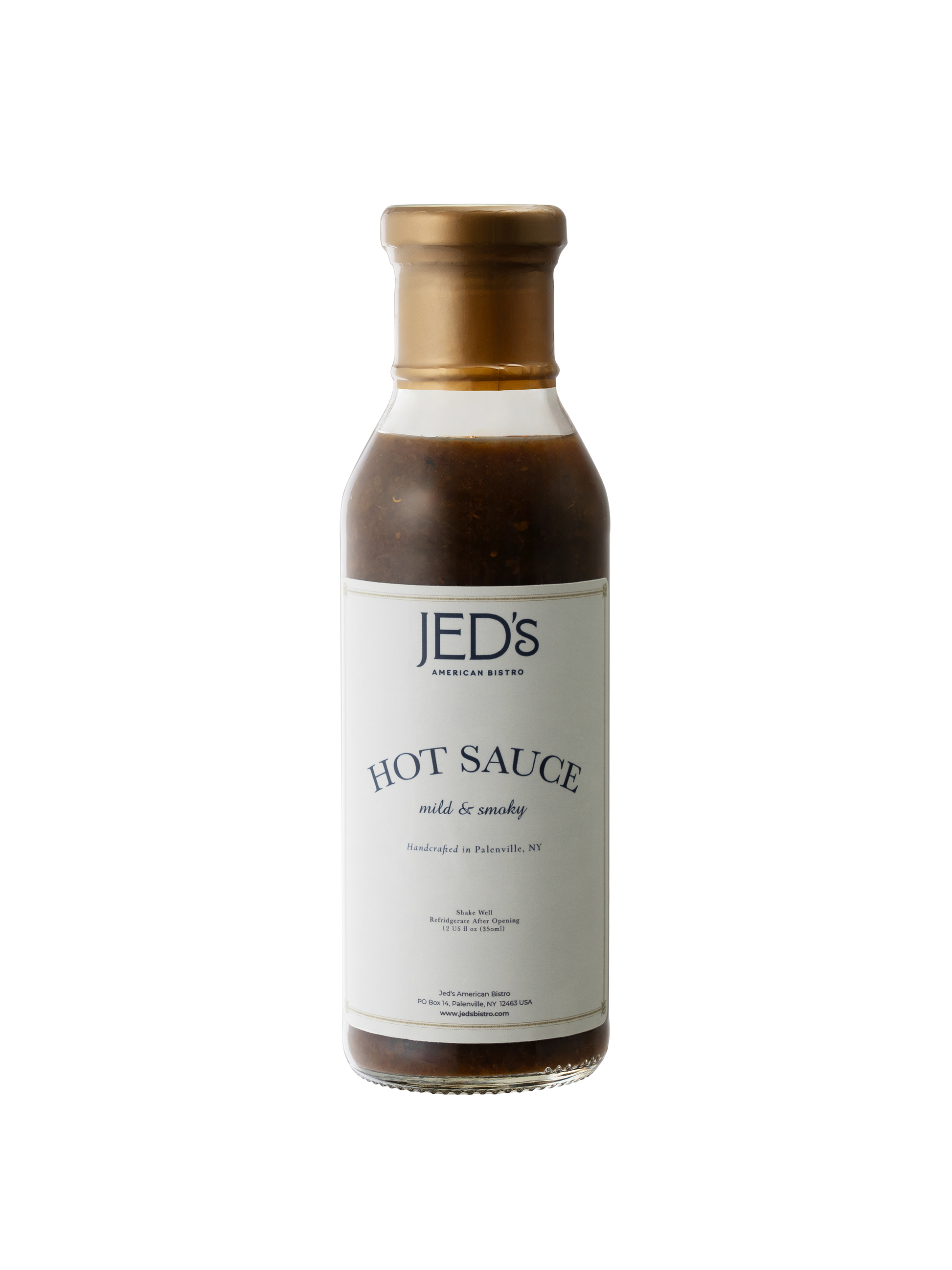 JED’s signature Hot Sauce is smoky and mild––and meant to be used generously. Each bottle marries the garden-fresh taste of tomatillos with roasted tomatoes and the kick of six varieties of peppers, complimented with just a pinch of aromatic cilantro.